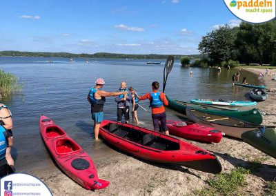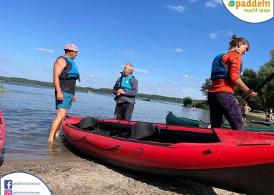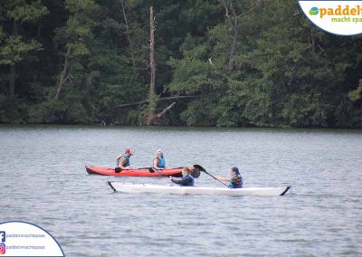 Für unsere Gäste war heute der Tag der Kanadier. Für weite Gewässer gibt es aus unserer Sicht einfach keine Alternative, wenn man bei leichtem Wind lange Strecken fahren möchte. In unseren mitgeführten Kanadiern von Gatz haben zwischen einer und vier Personen Platz, so dass sich sowohl Individualisten, als auch Familien begeistern konnten. Auch sind Kanadier gar nicht so aufwändig zu transportieren, wenn man weiß, wie. Aber dafür sind wir ja da und geben gerne Rat für den Einstieg in das Wassersportvergnügen.