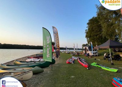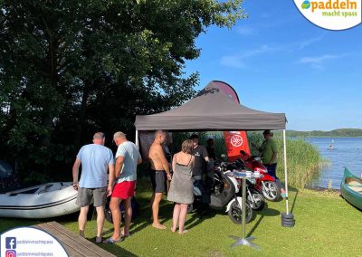 Am heutigen Tag lag das verstärkte Interesse bei den Kanadiern (wie immer bei großen Seen) und auch bei unseren Motorbooten von Yamaha. Obwohl man am Plöner See und den angrenzenden Seen nicht motorisiert (sei es via Elektro oder Verbrenner) fahren darf,  informierten sich die Urlauber über Antriebe, Kosten und vor allem Gewicht und Packmaße. Dies sind für Camper wichtige Faktoren, denn diese entscheiden am Ende darüber, ob man ein Wassersportgerät auch ordnungsgemäß transportieren kann. Mit den von uns mitgeführten Produkten ist dies aber in der Regel kein Problem, denn genau für dieses Einsatzgebiet haben wir diese ja schließlich dabei.