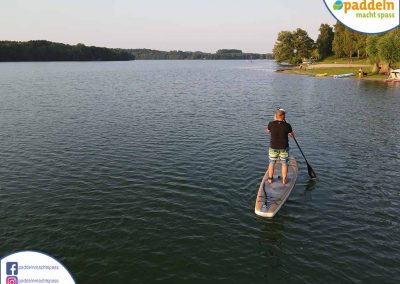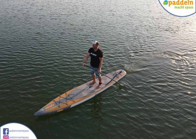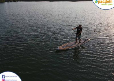 Viele Menschen probieren das Stand Up Paddling aus und es klappt relativ schnell. Andere haben einige Herausforderungen mehr, besonders wenn sie größer und schwerer sind als der Durchschnitt. Ein Beispiel dafür ist Jan. Jan ist 195cm groß und wiegt 120kg. Er versuchte sich tapfer, jedoch gelang es im nicht, sich auf dem SUP Board hinzustellen. Am Ende war er sehr frustriert und Lars bot ihm an, am nächsten Morgen gemeinsam mit ihm aufs Wasser zu gehen, damit er nicht nur im Knien über den Vierersee paddeln kann. Lars ist davon überzeugt, dass jeder paddeln kann (sowohl sitzend, als auch stehend), wenn er/sie das richtige Material zur Verfügung gestellt bekommt. Aus diesem Grund sind ein Besuch im Fachhandel und die Beratung vor Ort unglaublich wichtig, denn bei Discountern und im Online-Großhandel gibt es sowas definitiv nicht.