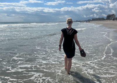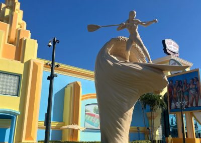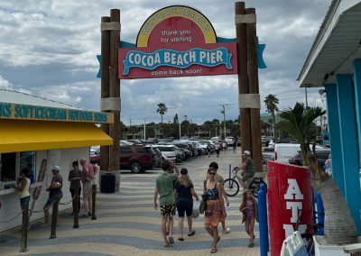 Nach dem Frühstück stand ein gemütlicher Spaziergang zum und am Strand von Cocoa Beach auf dem Programm. Der Sand fühlt sich warm an unter den Füßen und das Rauschen der glasklaren Wellen schaffte eine entspannte Atmosphäre. Wir schlenderten entlang der Küste und erreichten den berühmten Ron Jon Surfshop, der sich direkt an der Strandpromenade befindet. Ron Jon ist nicht nur ein Surfshop, sondern ein Wahrzeichen der amerikanischen Surfkultur. Hier gibt es alles. Was das Surferherz begehrt: von Strandbekleidung über Bretter bis hin zu Souvenirs, die an den entspannten Lebensstil Floridas erinnern.