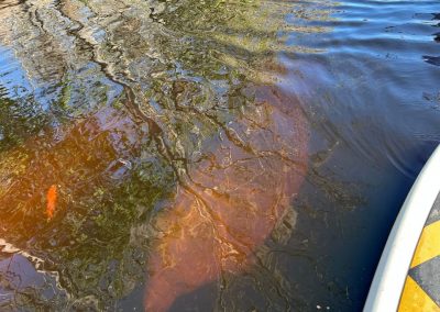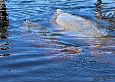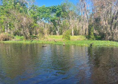 Nach einer Weile bemerkten wir eine sanfte Bewegung im Wasser. Manatees! Die riesigen, sanften Tiere schwebten fast schwerelos unter unseren Boards entlang, tauchten langsam neben uns auf, um Luft zu holen, und verschwanden wieder in der Tiefe. Es war ein magischer Moment, so nah an diesen friedlichen Riesen zu sein und sie in ihrer natürlichen Umgebung zu erleben. Wenig später sahen wir einen Alligator, der sich am Ufer in der Sonne räkelte. Aus sicherer Entfernung beobachteten wir das beeindruckende Reptil, das regungslos dalag und sich von unserer Anwesenheit nicht im Geringsten stören ließ. Ein faszinierender Anblick, der uns einmal mehr daran erinnerte, in welch einzigartiger Natur wir uns befanden.