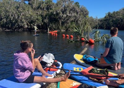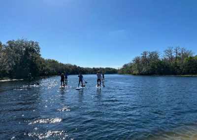 Diese atemberaubende Umgebung und das strahlende Wetter sorgten für den perfekten Start in den Tag. Schon beim Sprung auf das Board war klar, dass uns die schöne Natur Floridas wieder einmal erwartete. Die Wasseroberfläche war ruhig, gelegentlich zogen Fischschwärme unter unseren Boards hindurch und über uns kreisten Vögel, die sich später in den Bäumen oder am Ufer niederließen.