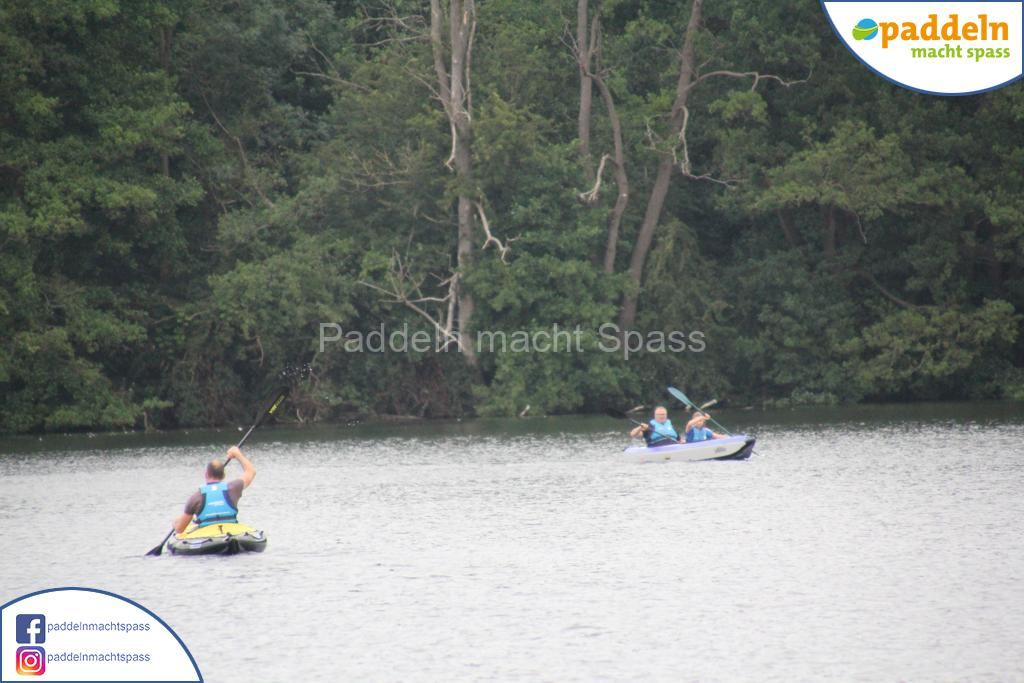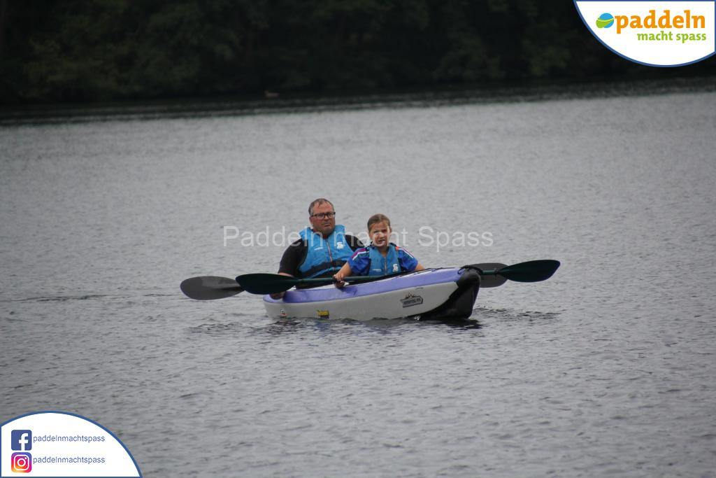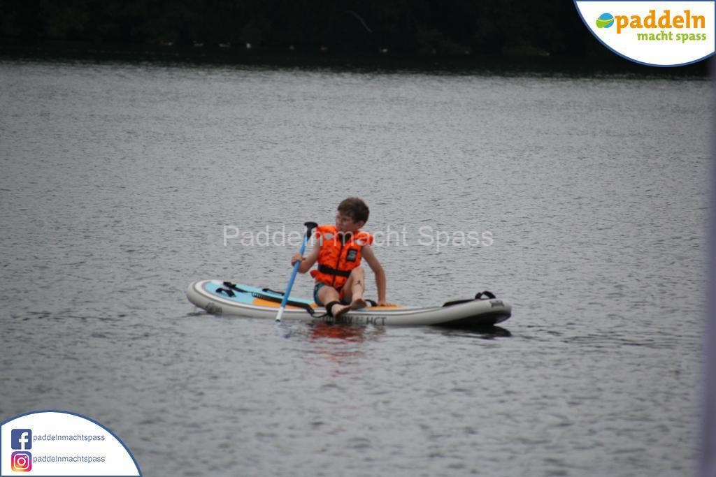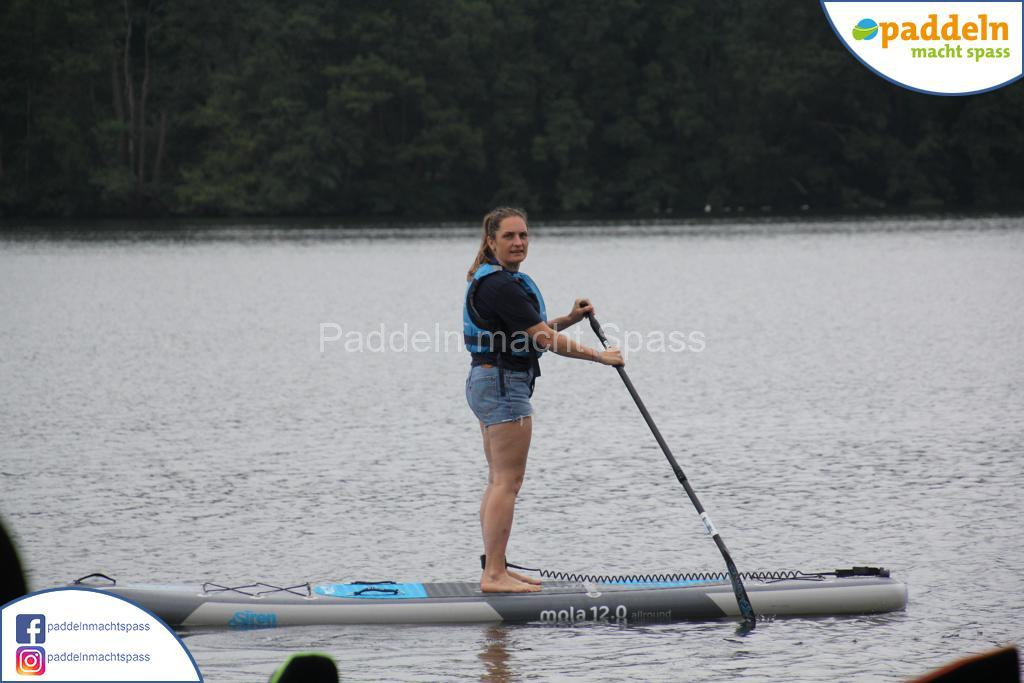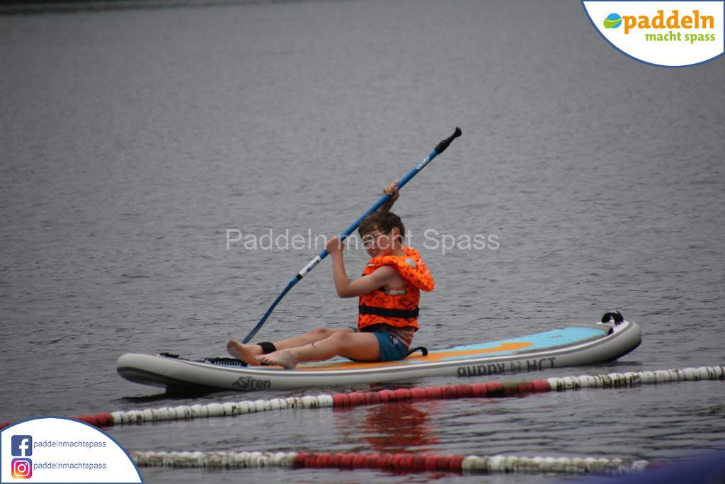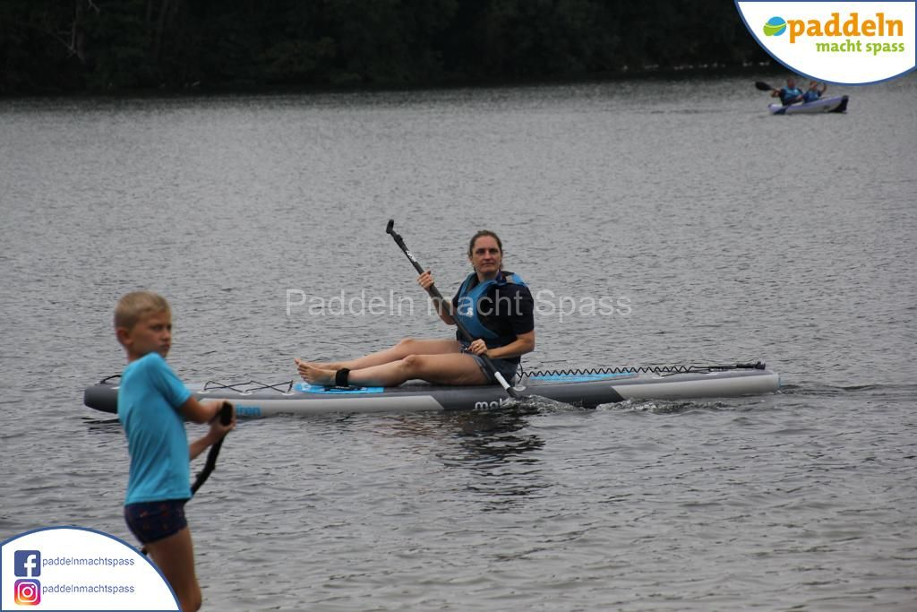 Am Nachmittag stand dann ein besonderes Highlight an: die SUP-Challenge zwischen unserem Teamleiter Lars und Thorben vom Campingplatz Augstfelde. Das Ziel: Wer fällt zuerst ins Wasser? Beide standen gemeinsam auf einem SUP-Board und versuchten, sich nur durch Gewichtsverlagerung gegenseitig ins kühle Nass zu befördern.