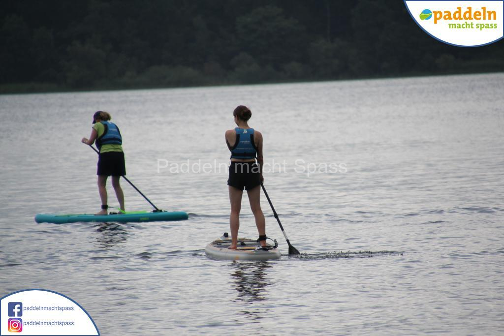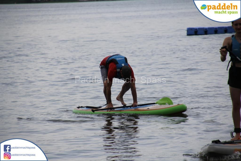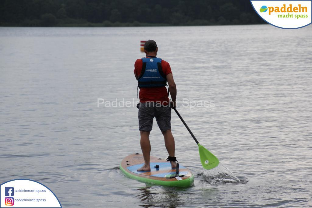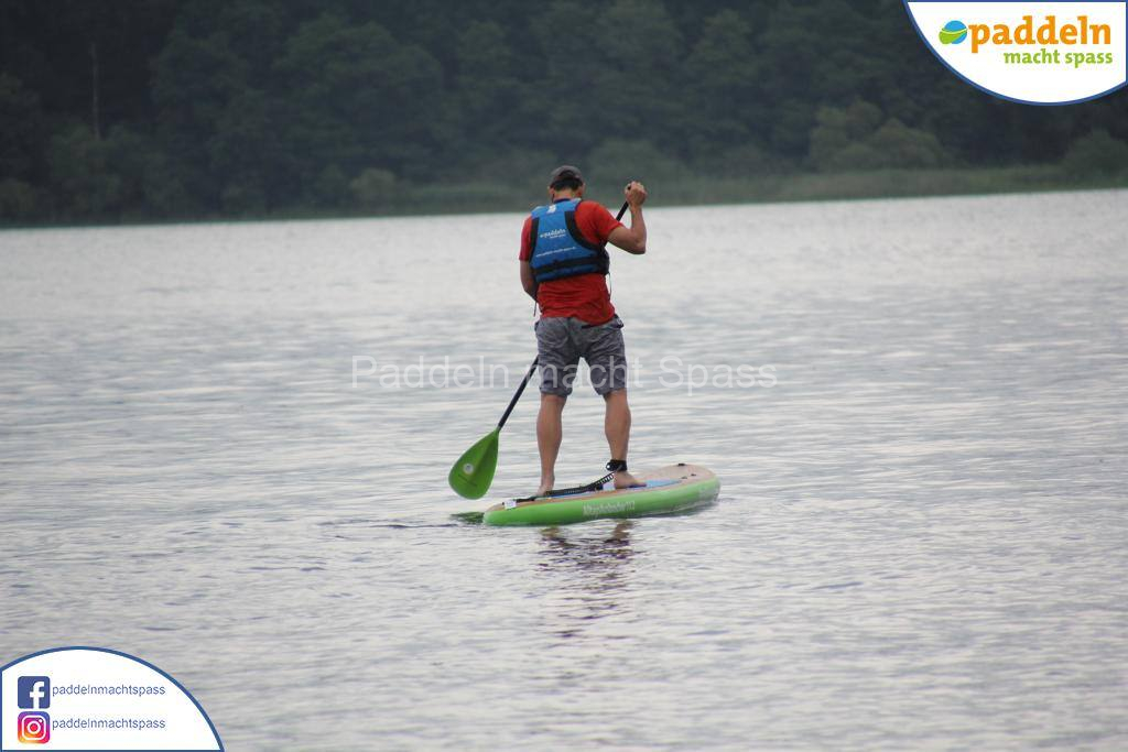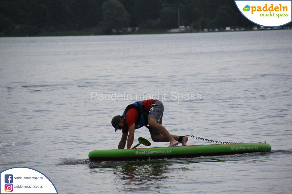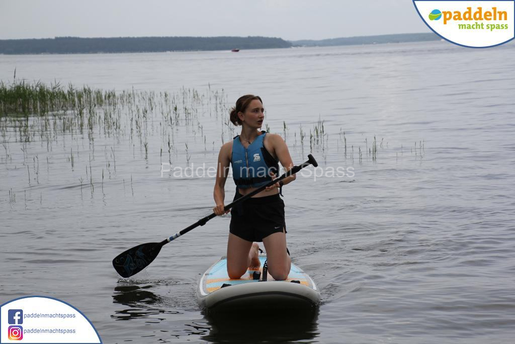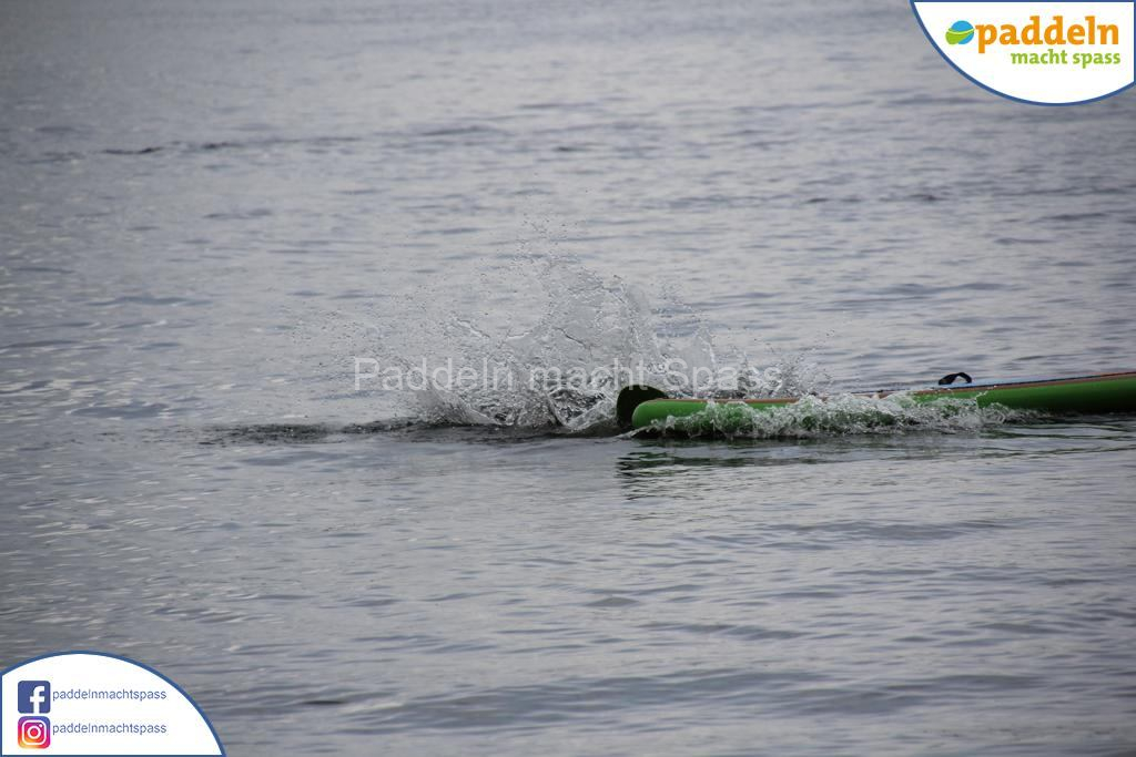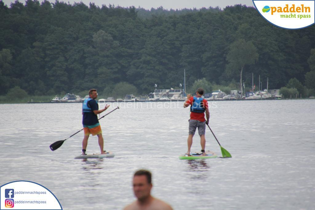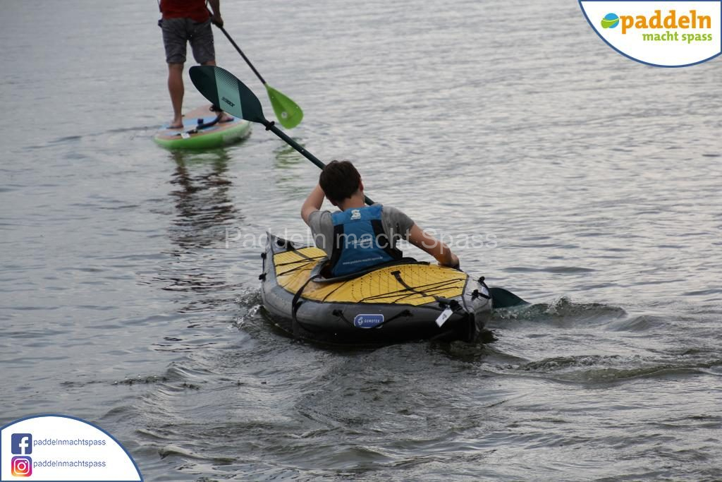 Besonders unsere Elektromotoren zogen die Aufmerksamkeit auf sich. Kein Wunder, denn das Wassersportrevier rund um den Campingpark Zuruf lädt förmlich dazu ein, auch einmal motorisiert über den See zu gleiten. Gleichzeitig wurde fleißig gepaddelt – und wie so oft waren auch Teilnehmer dabei, die zunächst selbstbewusst meinten: „Ich habe das schon mal gemacht, ich brauche keine Hilfe.“ Nicht selten endete dieser Satz dann mit einem unfreiwilligen Bad im See, sehr zur Belustigung der mitgereisten Familien und Freunde.