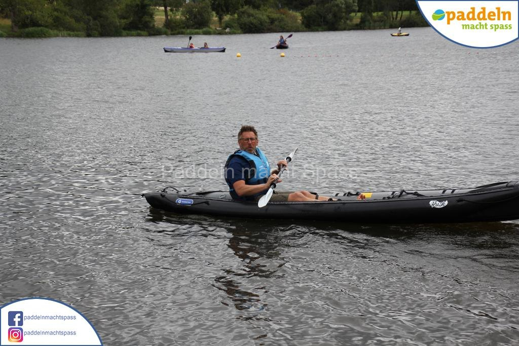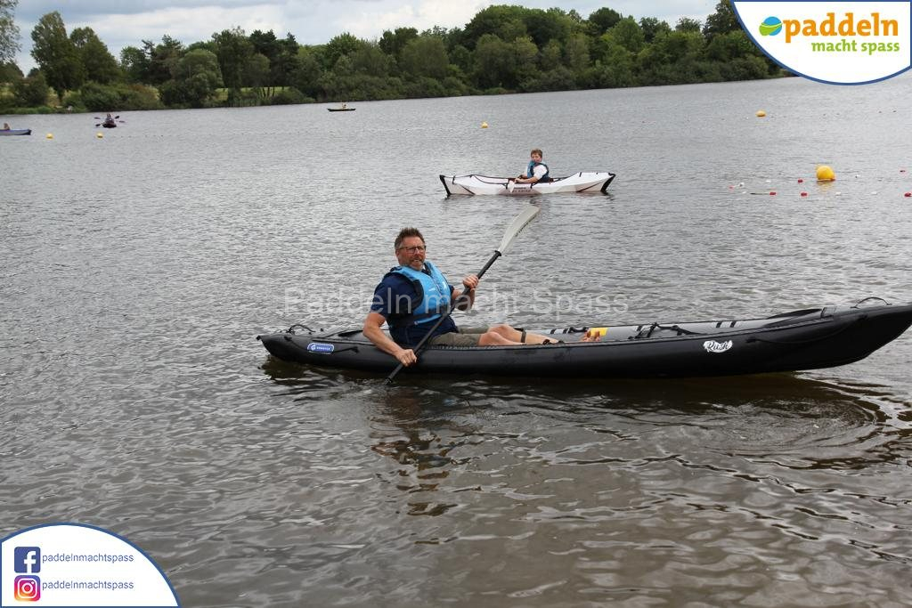 Der nächste Tag startete vielversprechend – und vor allem mit großem Andrang! Trotz durchwachsenem Wetter und gelegentlichen Regenschauern füllte sich das Gelände schnell mit neugierigen Besucherinnen und Besuchern. Der Platz war gut gefüllt – viele Camper, aber auch zahlreiche gezielt angereiste Testpaddler aus dem Rhein-Main-Gebiet, nutzten die Gelegenheit, unsere Boote, Boards und verschiedenen Ausstattungen zu testen.